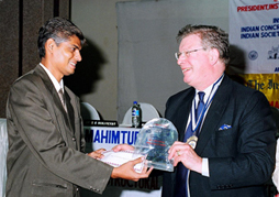 Mr. Jayant Lakhlani accepting award from Dr. Michael Dickson, C. B. E. President of Institution of Structural Engineers, UK on 17th January, 2006 at Mumbai.