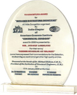 Lakhlani Associates won this award for Indoor Stadium at Rajkot, in a national competition held by American Concrete Institute – India chapter